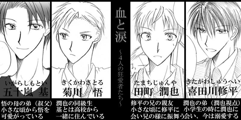 「血と涙」は狂愛者たちの恋愛となってます、普通な潤也と悟もちょっとずつ